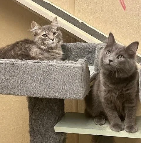 Adopted! Marcia and Jan are 4 month old spayed female Gray DSH. They are a bonded pair and we would LOVE to keep them together.