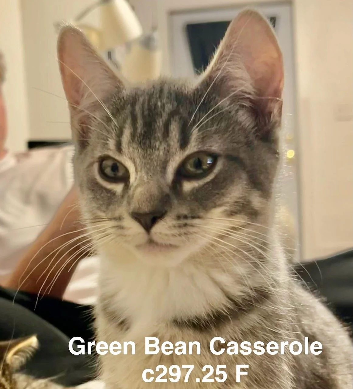 Adopted! Green Bean Casserole is a 3 month old spayed female Tiger and White DSH.