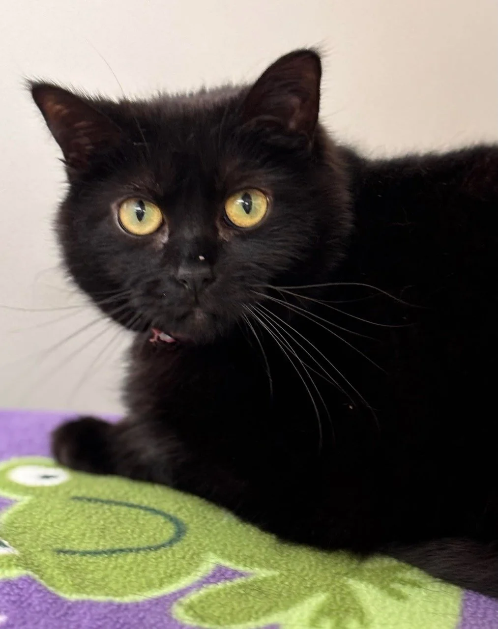 Yoda is a sweet senior boy who prefers to spend as much time sleeping in your lap as possible. He does have some dry sneezing spells and does gentle "love bites" therefore would probably be best in a home without small children. He is good with other cats and with dogs, but needs to be introduced slowly. He is a fantastic, cuddly boy looking for a forever home where he can snuggle up and watch tv or sit on someone's lap while they are reading. Yoda is currently in a foster home.