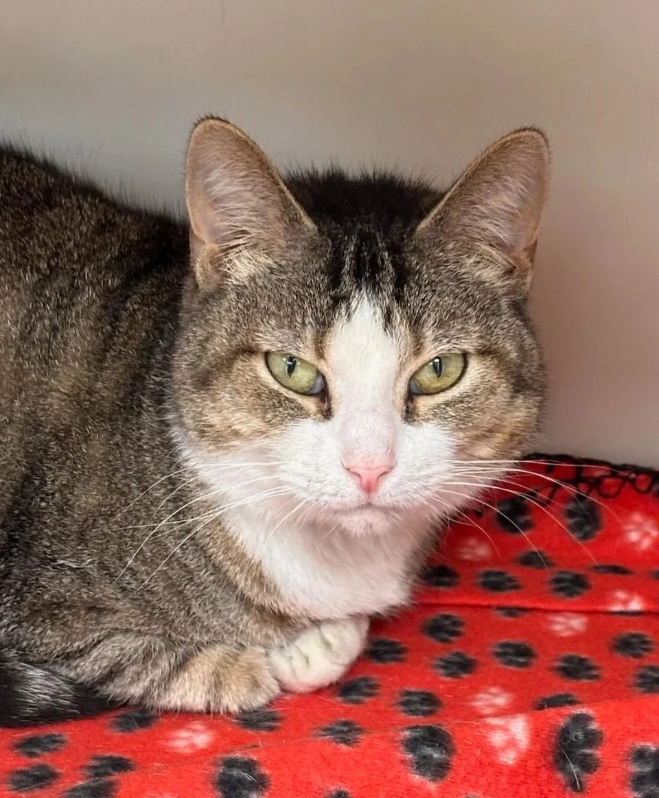 Twilight is an 8 year old spayed female Tiger and White DSH. Twilight is a sweet girl who enjoys head rubs. She came from a home with other cats and dogs. She has done well adjusting to shelter life.
