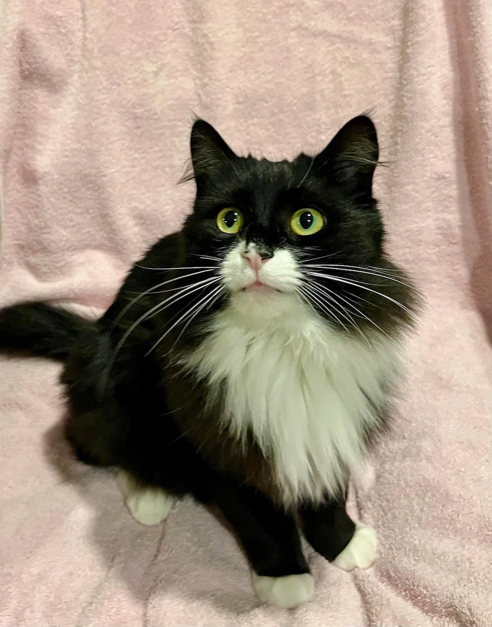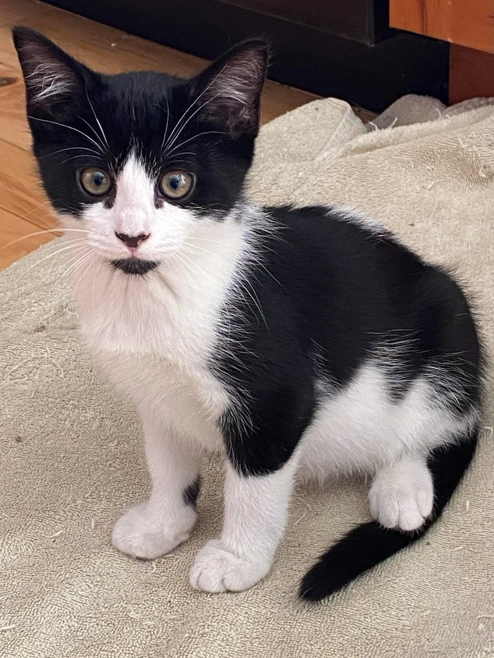 Linus is a 3 month old neutered male Black and White DSH.