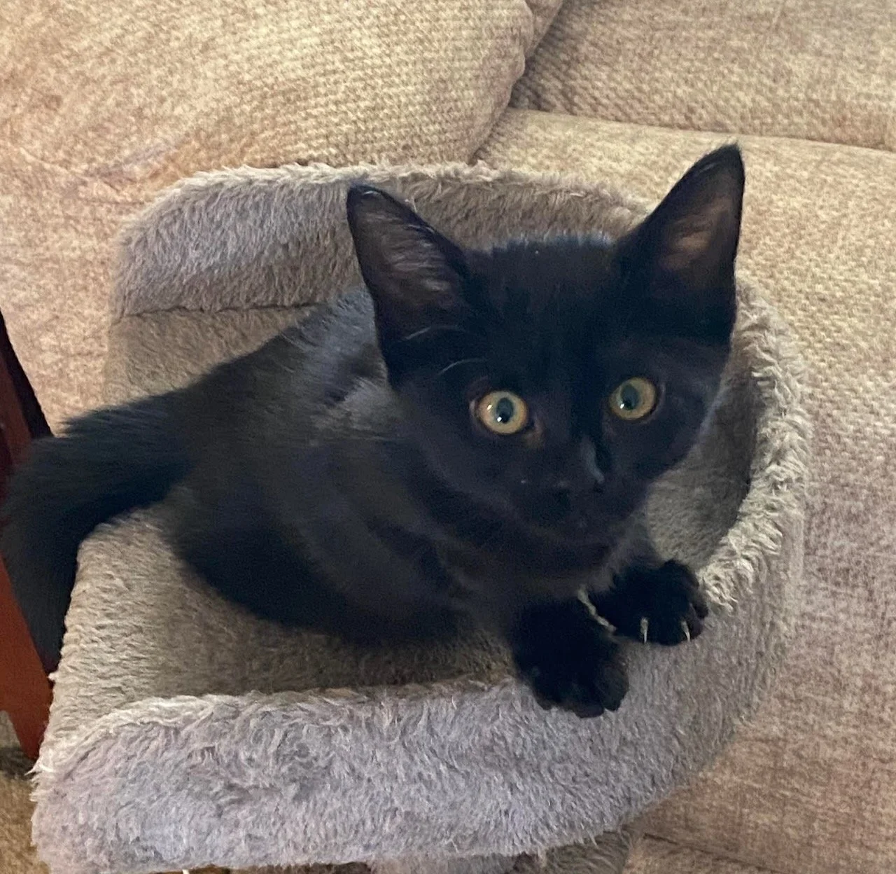 Spice is a 3 month old spayed female Black DSH.