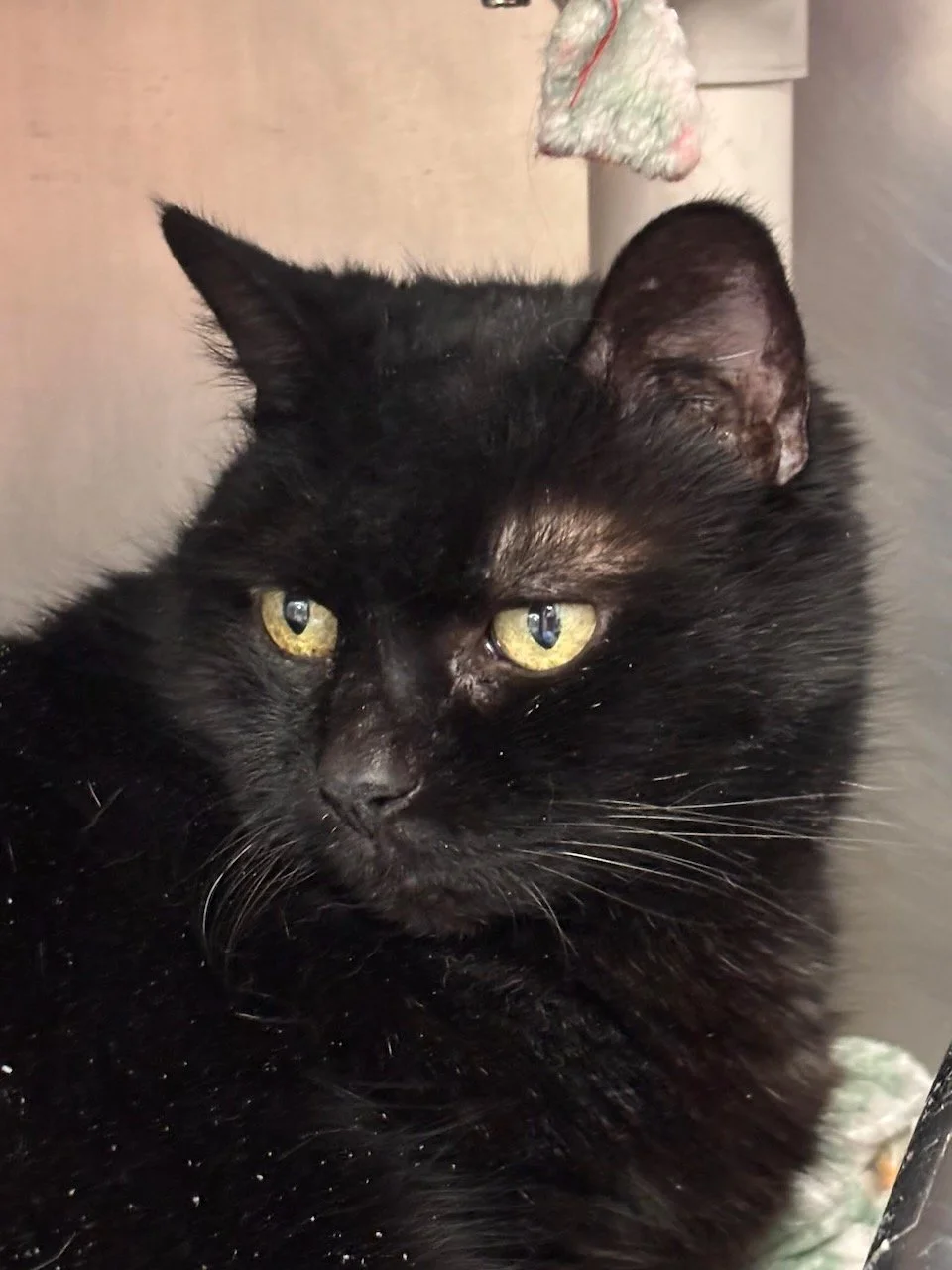 Lucy is an 10 year old spayed female Black DSH. Lucy came in with some terrible mats and ingrown nails. We shaved out the mats and trimmed up the nails. Once her fur grows back in, she will be quite beautiful. Lucy is said to be good with dogs.